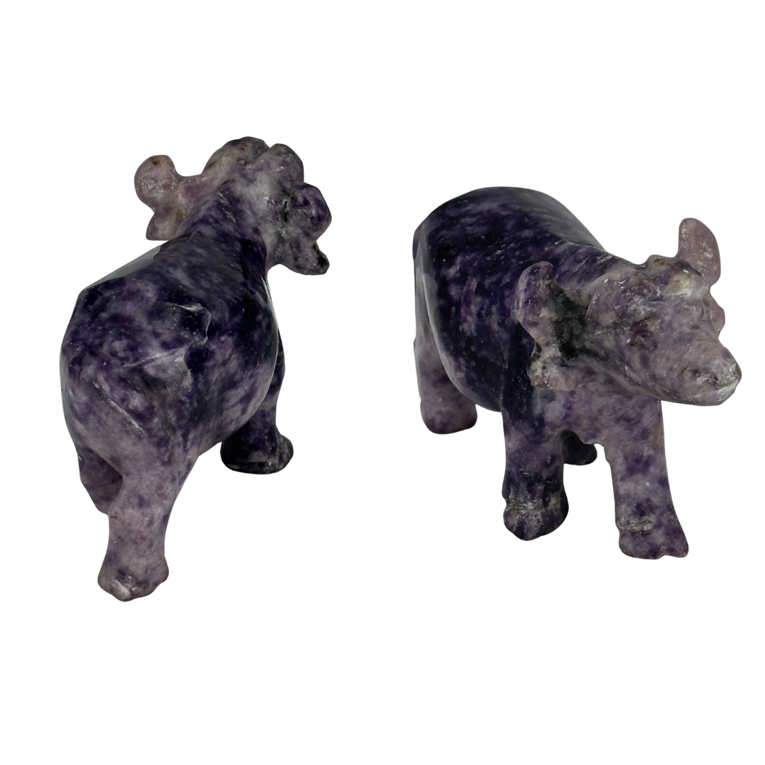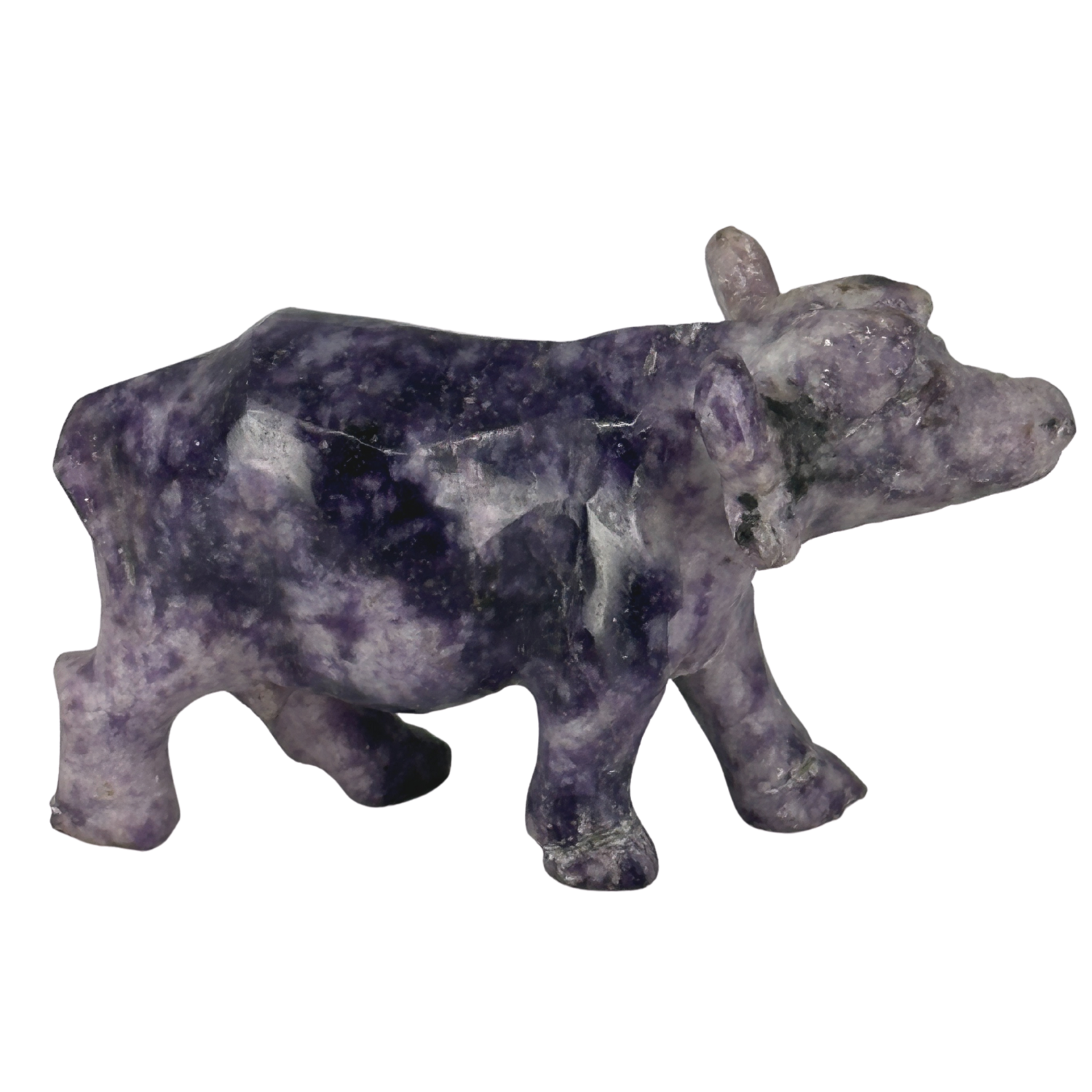 This Lepidolite buffalo may be compact, but it carries deep symbolism and solid weight. Hand-carved from genuine Lepidolite, this piece measures approximately 4 inches long and weighs 8.2 oz, making it a balanced, substantial carving without being oversized.