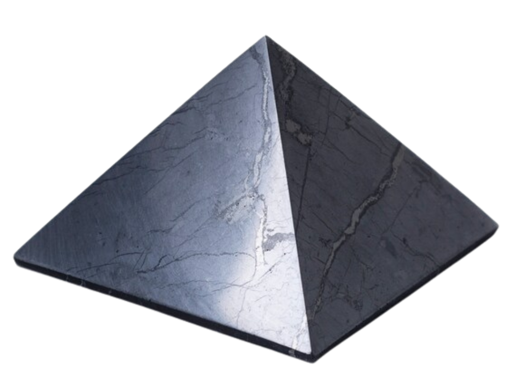 Carved from solid Shungite, this pyramid carries the deep, grounding qualities the mineral is known for—calming chaotic frequency, easing EMF load in a space, and helping stabilize the atmosphere so you can think clearly and feel centered. A piece of this scale doesn’t just influence a desk or small area; it affects the whole room.