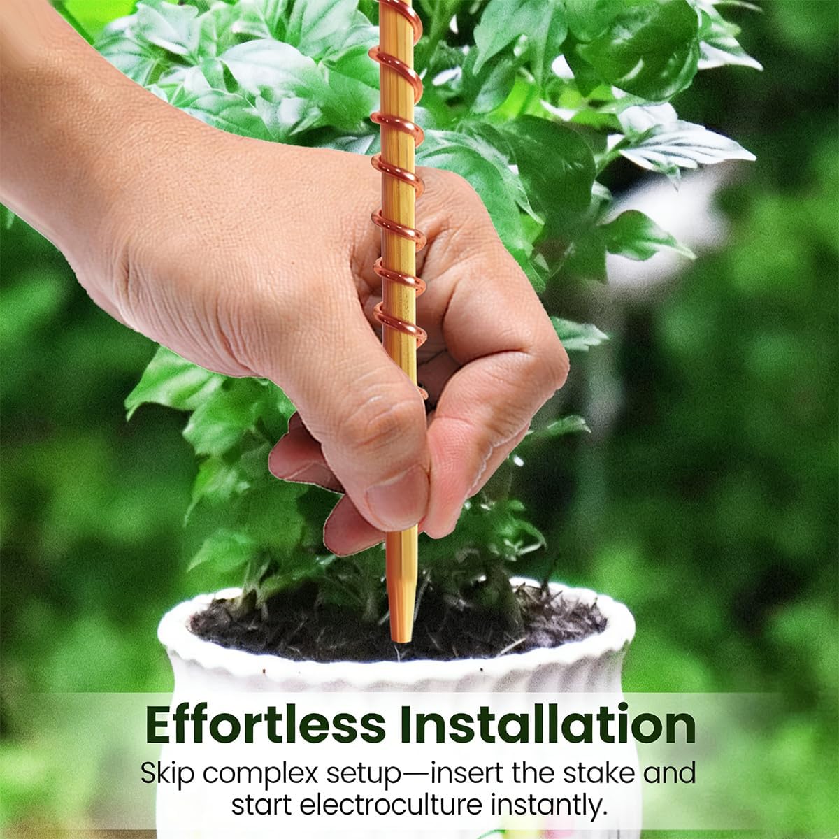 The process we’re referring to is often called electro culture or bio electromagnetics in agriculture. This practice involves using materials like copper wire or tubing to harness natural electromagnetic energies, which are believed to enhance plant growth. Simply stick the copper rod a couple inches into the soil (within 12″ of plants stalk), can be used with all house or garden plants.