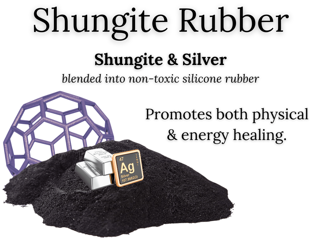 One such innovation is our Shungite Rubber, a unique material created using a specialized blend of Shungite powder and pure silver powder, mixed with non-toxic latex. This combination results in a flexible yet durable material that generates a distinct energy field with a frequency highly compatible with physical healing and energetic balancing.